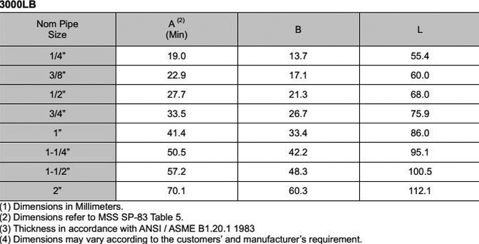 1/2” to 4 NB in Sch 10s, 40s, 80s, 160s, XXS. (NPS 1/8 ~ 4 inch corresponding to DN 6 ~100) ASTM A182 Forged Unions